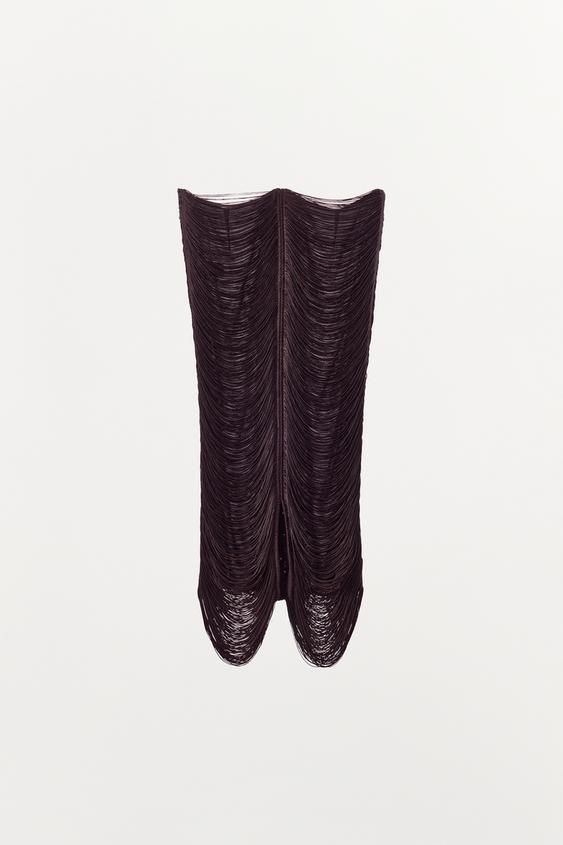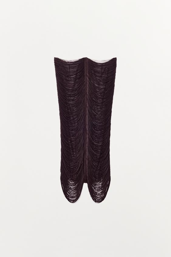 ZARA ЮБКА МИДИ С БАХРОМОЙ, КОРИЧНЕВЫЙ