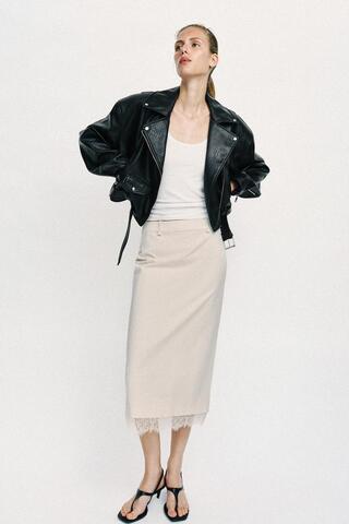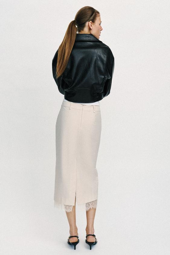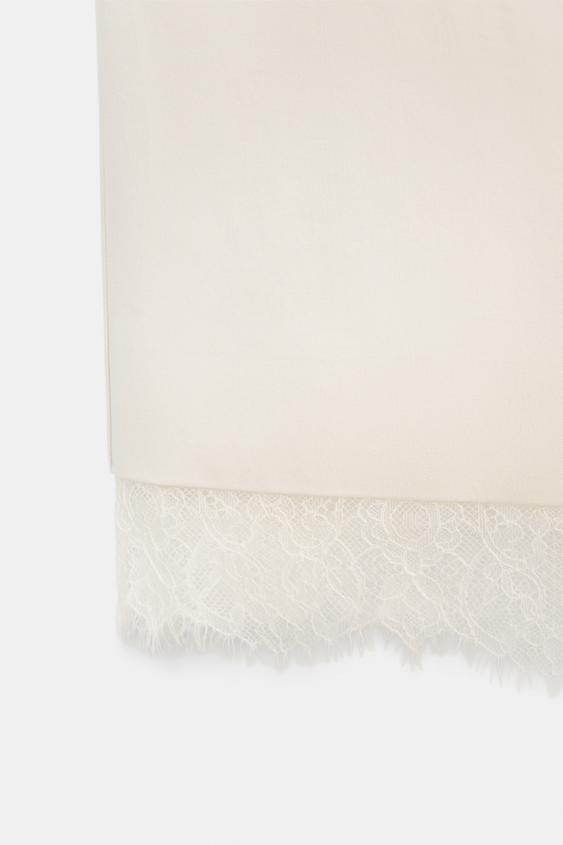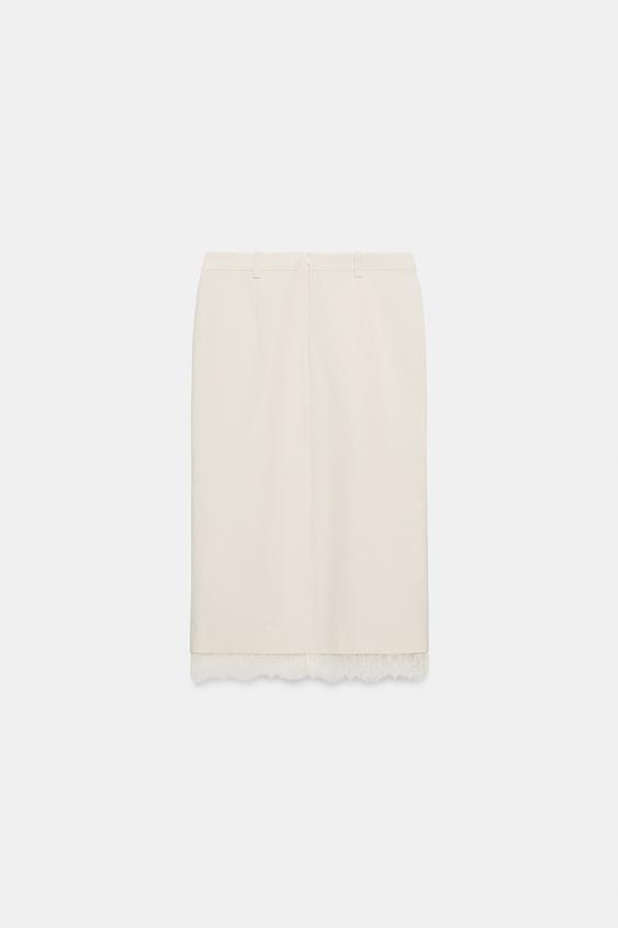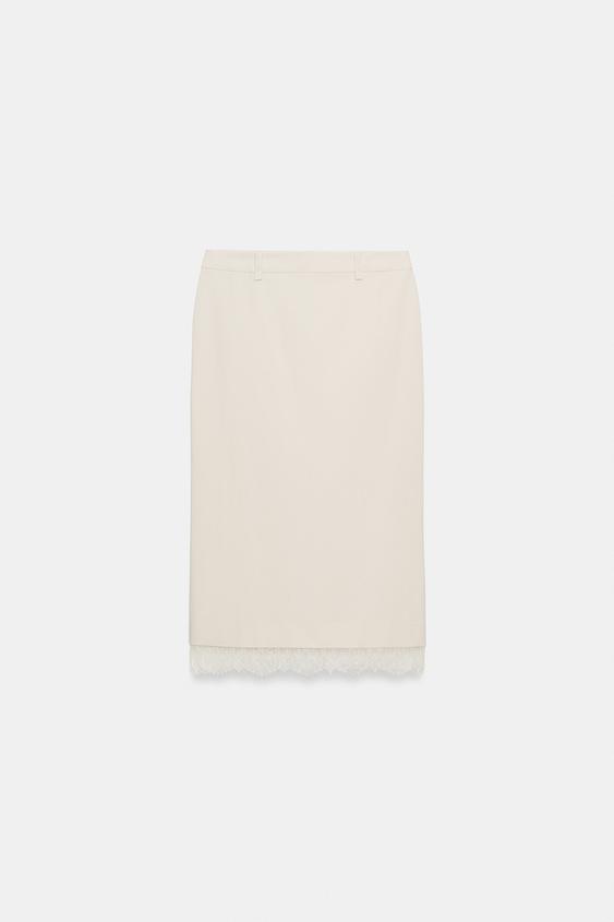 ZARA ЮБКА МИДИ С КРУЖЕВОМ, КОСТЯНОЙ