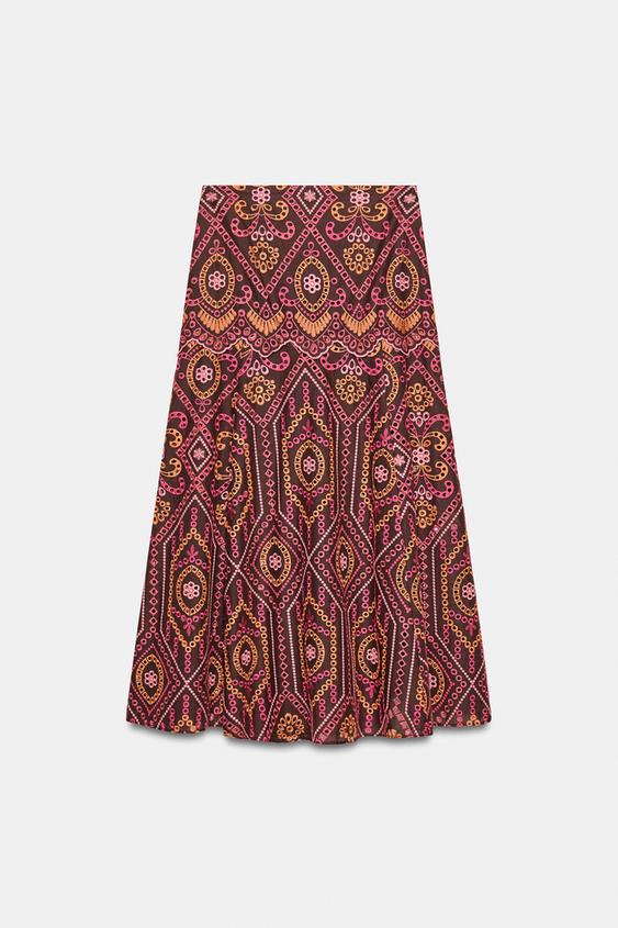 ZARA ЮБКА МИДИ С ПЕРФОРАЦИЕЙ, РАЗНОЦВЕТНЫЙ
