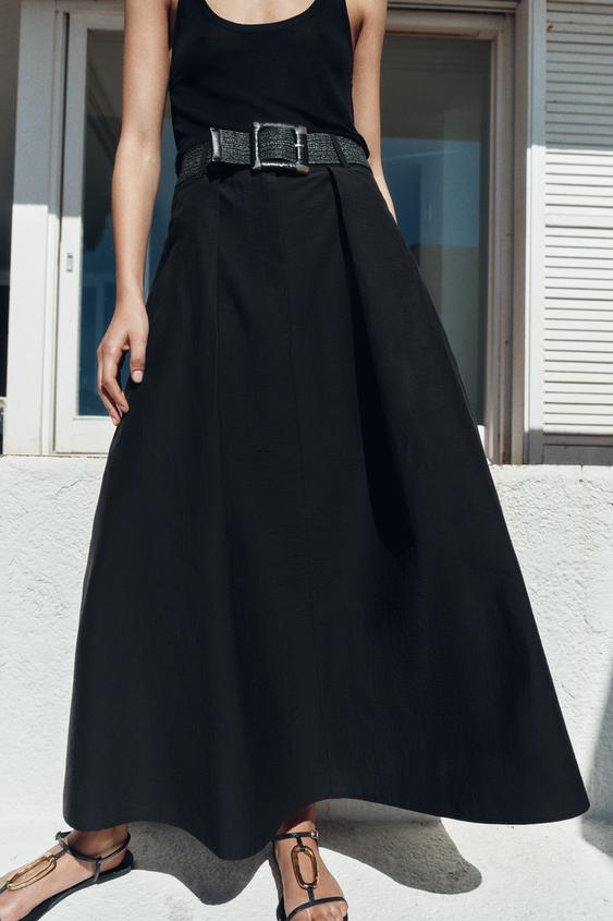 ZARA ЮБКА МИДИ С ПОЯСОМ-НАКИДКОЙ, ЧЕРНЫЙ