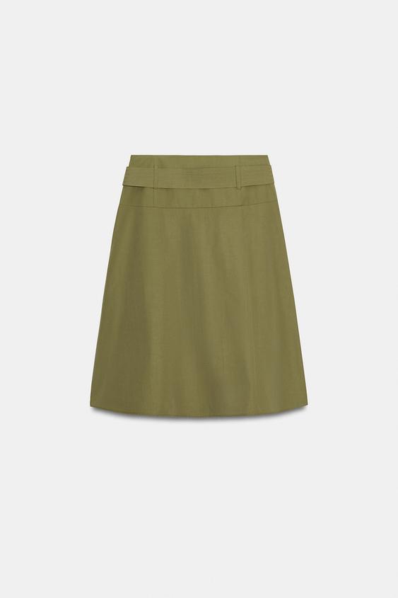 ZARA ЮБКА МИДИ С РЕМНЕМ, ХАКИ