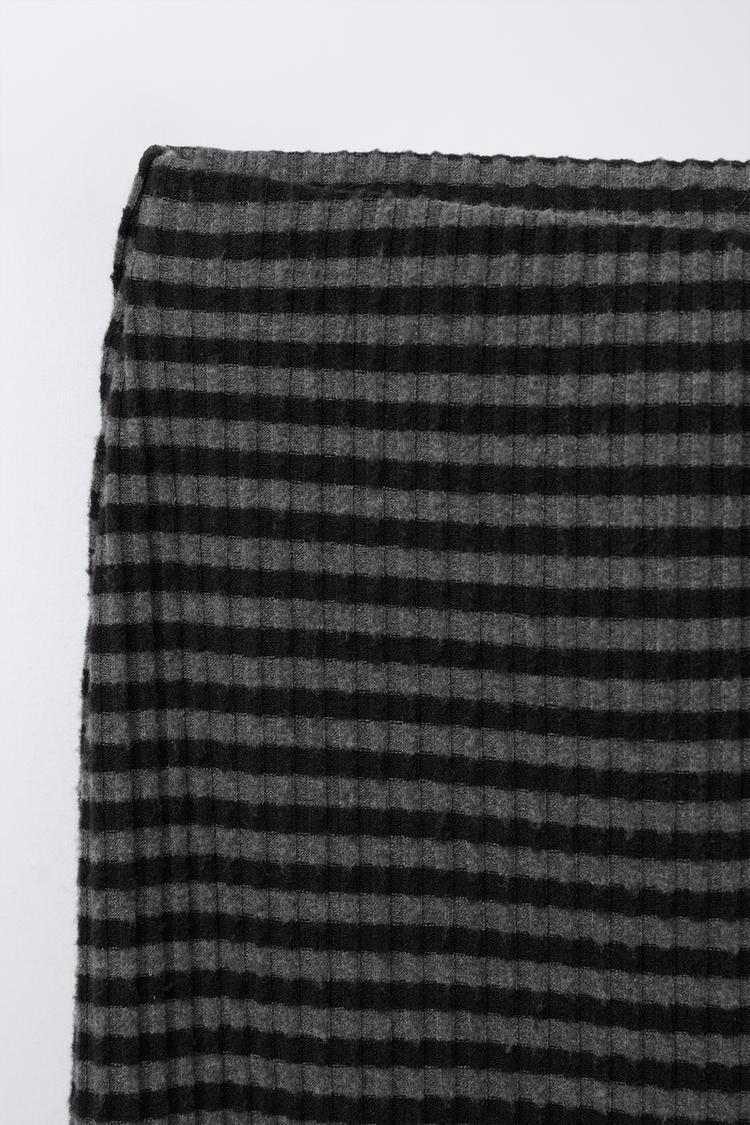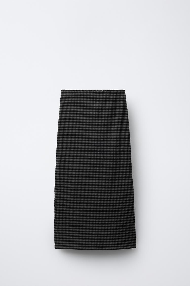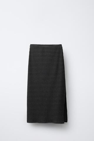 ZARA ЮБКА МИДИ С ТЕКСТУРОЙ В ПОЛОСКУ, ЧЕРНЫЙ