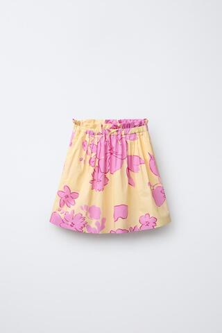 ZARA ЮБКА МИДИ С ЦВЕТОЧНЫМ ПРИНТОМ, ПАСТЕЛЬНО-ЖЕЛТЫЙ