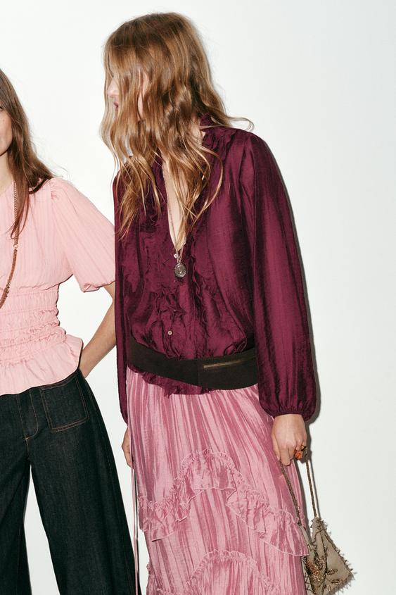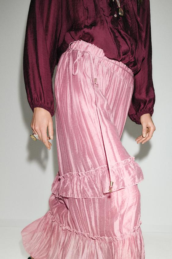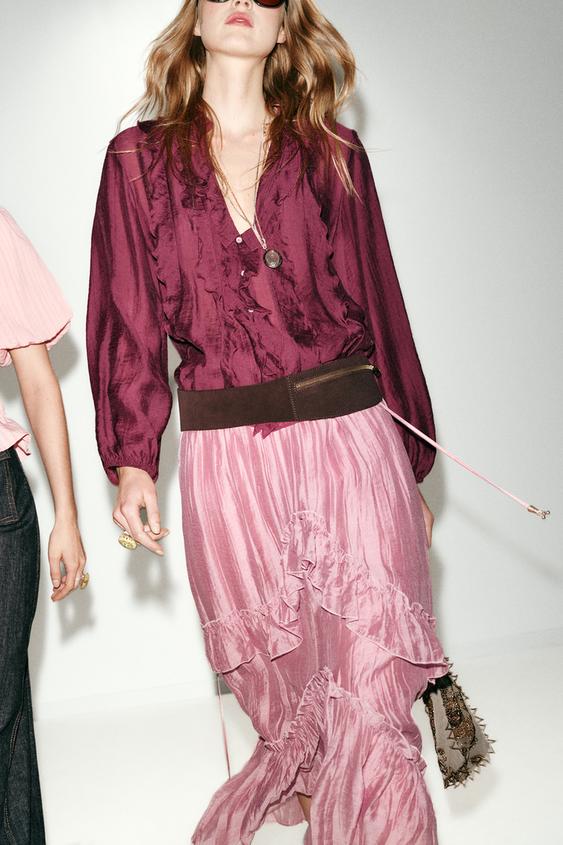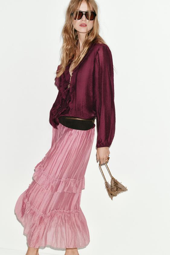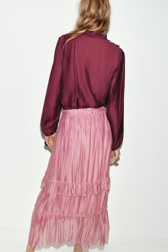 ZARA ЮБКА МИДИ С ВОЛАНАМИ, МАРСАЛА