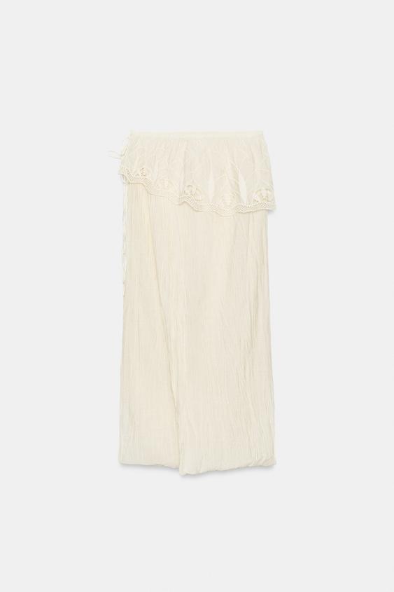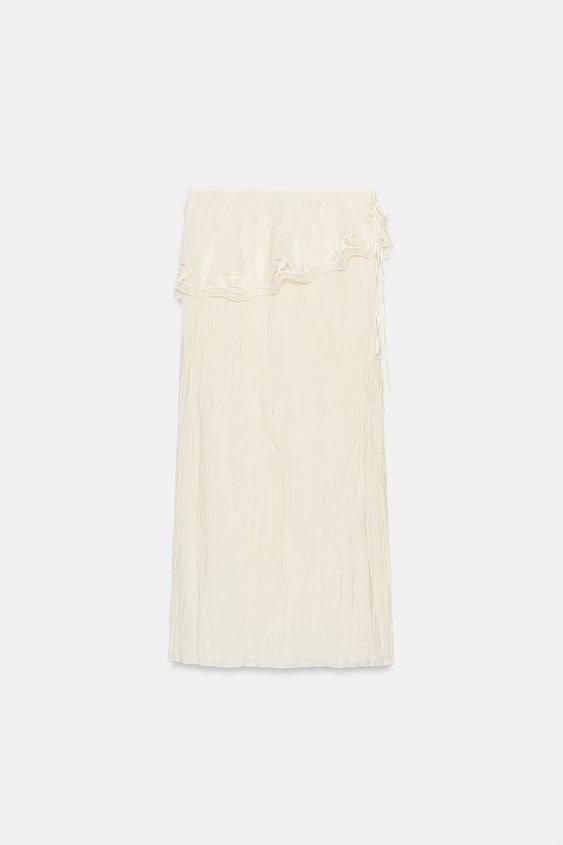 ZARA ЮБКА МИДИ С ВЫШИВКОЙ — ZW COLLECTION, ЭКРЮ