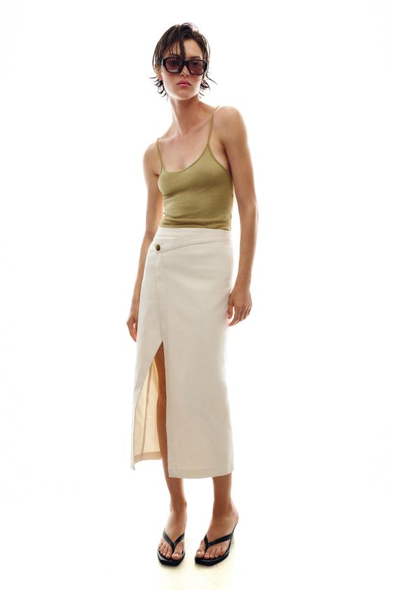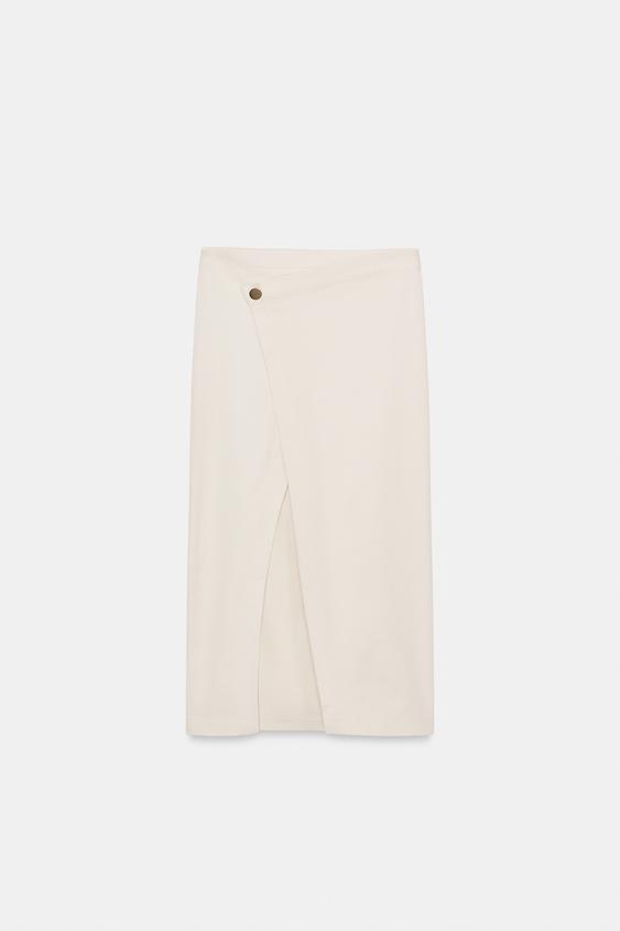 ZARA ЮБКА МИДИ С ЗАПАХОМ, ЭКРЮ