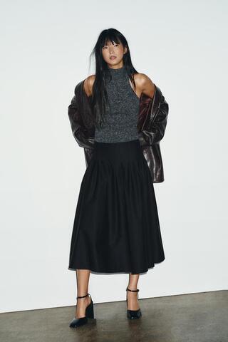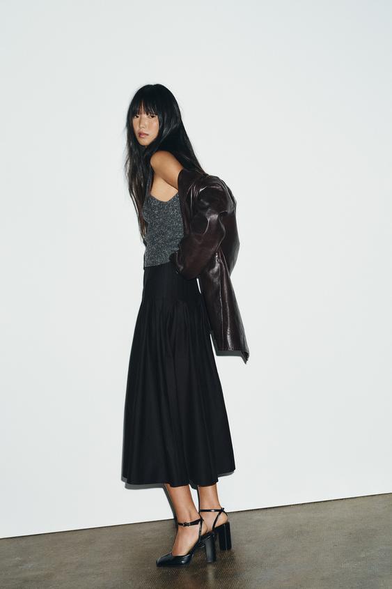 ZARA ЮБКА МИДИ СО СКЛАДКАМИ, ЧЕРНЫЙ