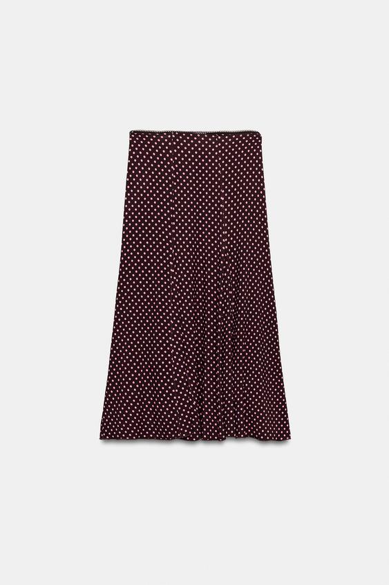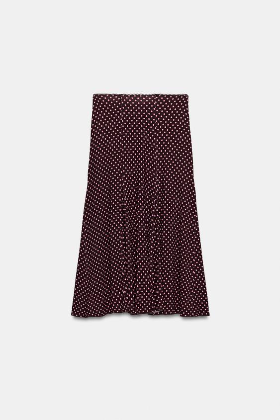 ZARA ЮБКА МИДИ В ГОРОШЕК, КОРИЧНЕВЫЙ