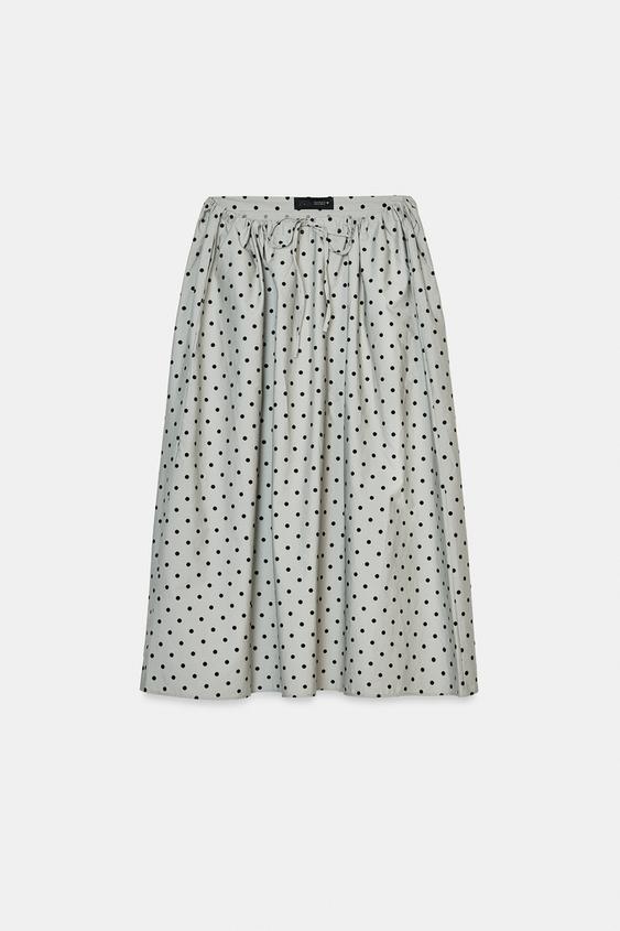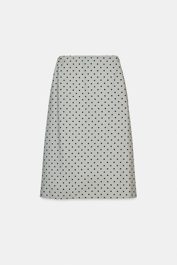 ZARA ЮБКА МИДИ В ГОРОШЕК, МЯГКИЙ СЕРЫЙ