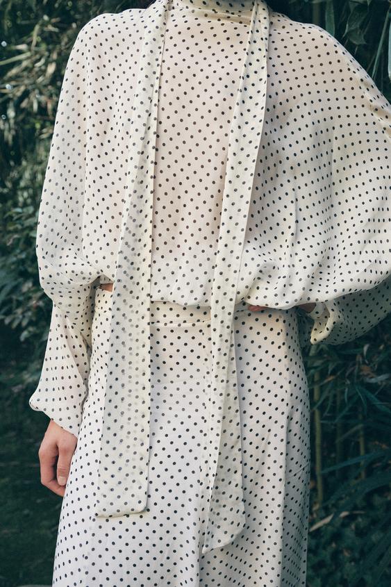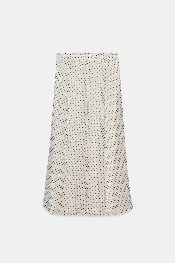 ZARA ЮБКА МИДИ В ГОРОШЕК — ZW COLLECTION, БЕЛЫЙ/ЧЕРНЫЙ