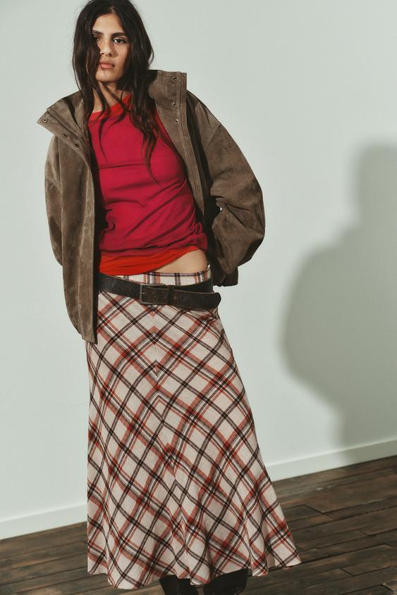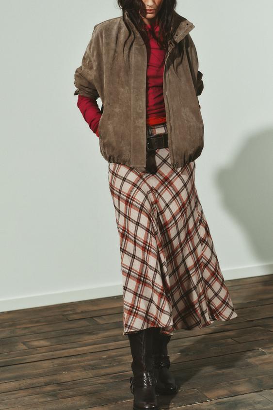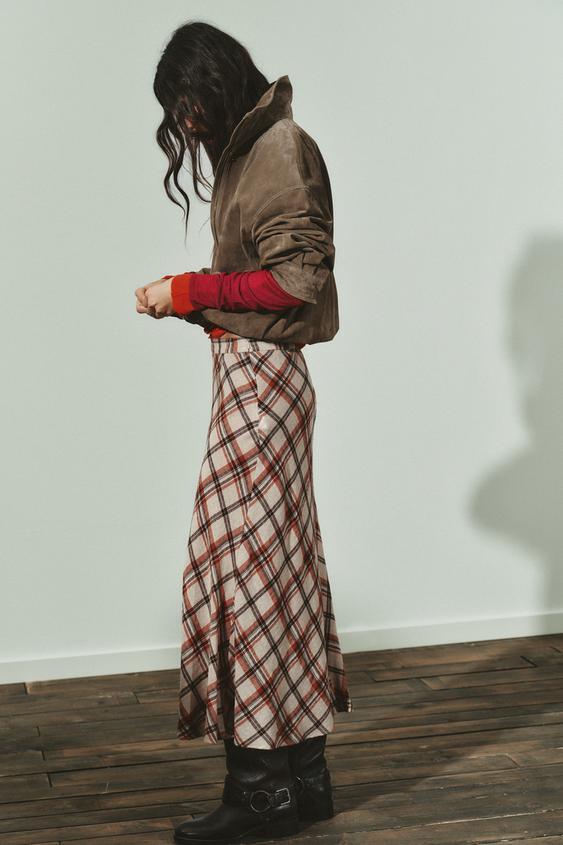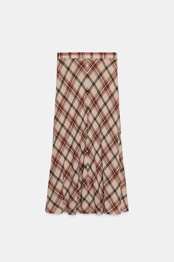 ZARA ЮБКА МИДИ В КЛЕТКУ, БЕЖЕВЫЙ