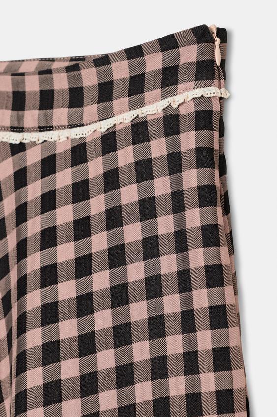 ZARA ЮБКА МИДИ В КЛЕТКУ ВИШИ С КРУЖЕВОМ, РАЗНОЦВЕТНЫЙ