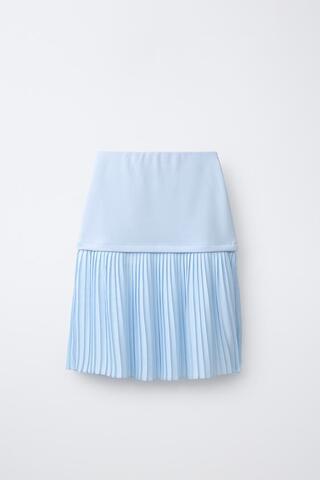 ZARA ЮБКА МИДИ В СКЛАДКУ, ГОЛУБОЙ