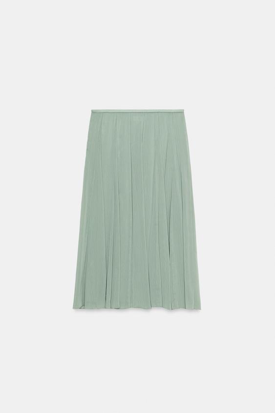 ZARA ЮБКА МИДИ — ZW COLLECTION, ПАСТЕЛЬНО-ЗЕЛЕНЫЙ