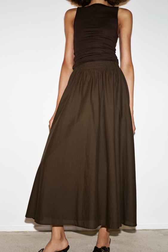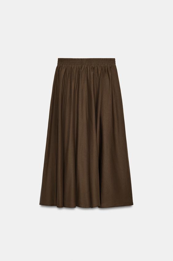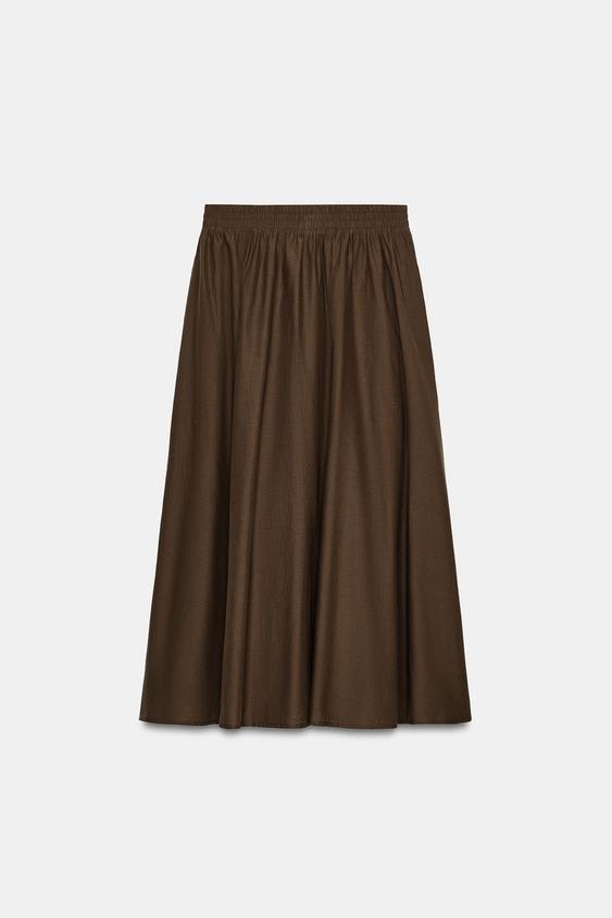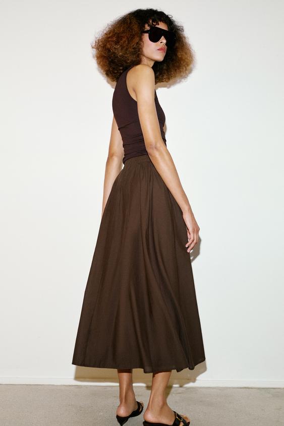 ZARA ЮБКА-НАКИДКА МИДИ, КОРИЧНЕВЫЙ