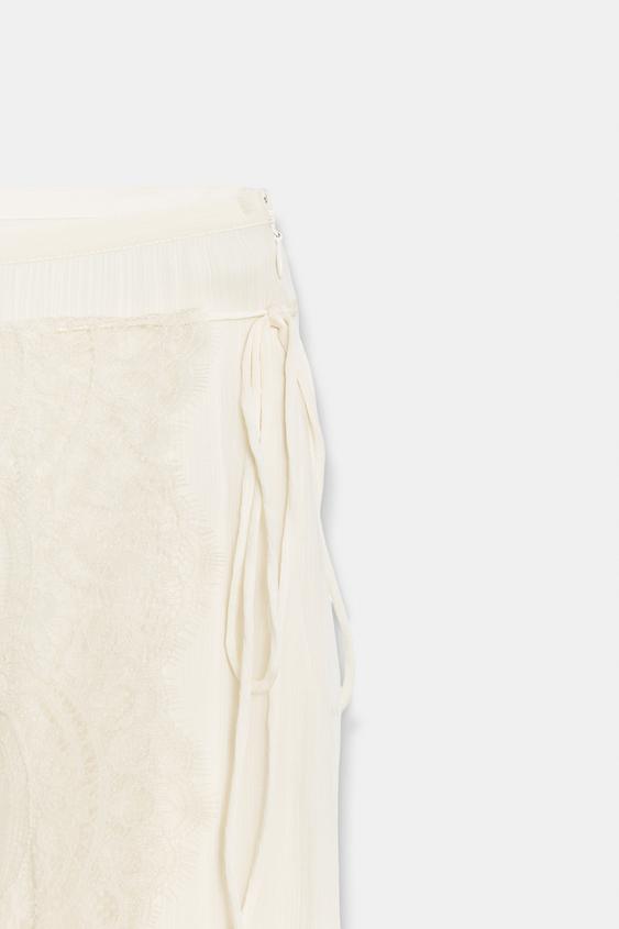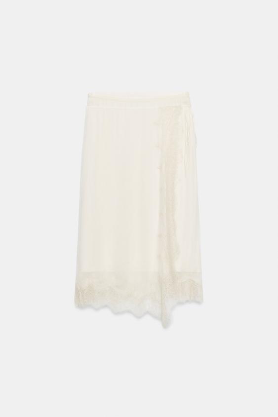 ZARA ЮБКА-ПАРЕО С КРУЖЕВОМ — ZW COLLECTION, ЖЕЛТОВАТО-БЕЛЫЙ