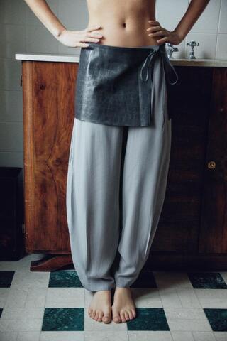 Юбка-ремень из 100% натуральной кожи с тиснением. Боковая застежка с разрезом и завязкой.