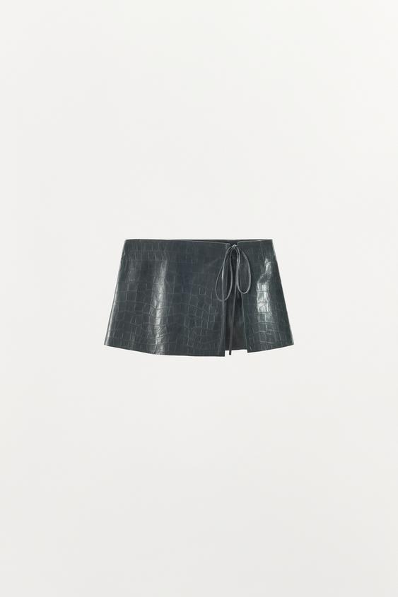 ZARA ЮБКА-РЕМЕНЬ ИЗ 100% НАТУРАЛЬНОЙ КОЖИ С ТИСНЕНИЕМ, СИНИЙ
