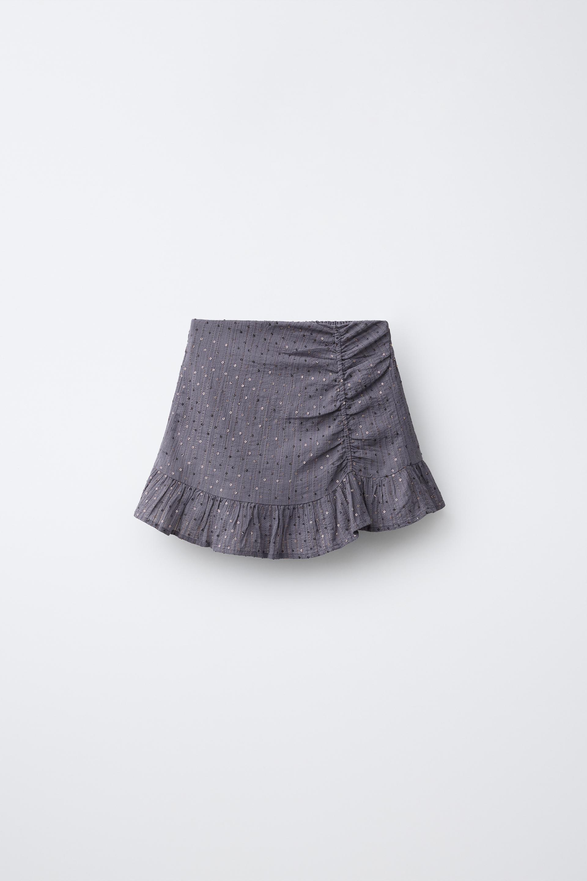 ZARA ЮБКА С ДРАПИРОВКОЙ И ПАЙЕТКАМИ, АНТРАЦИТОВО-СЕРЫЙ