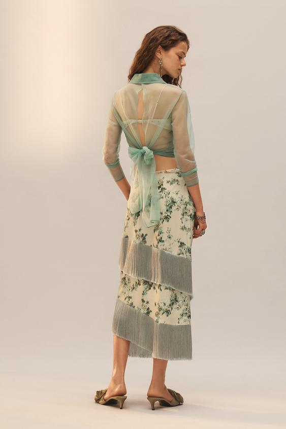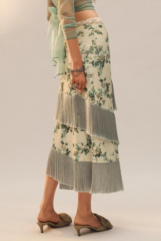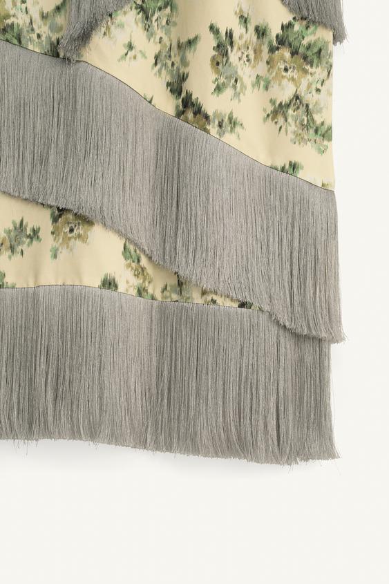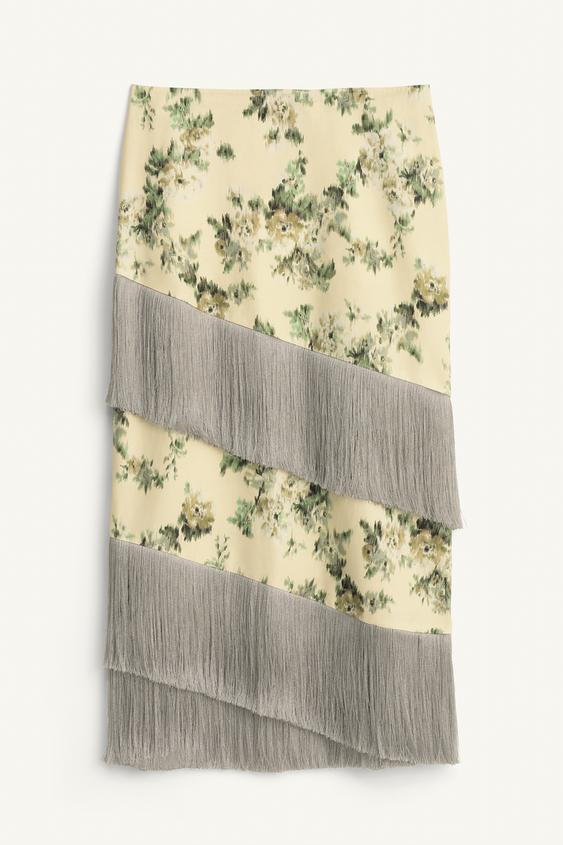 ZARA ЮБКА С ЦВЕТОЧНЫМ УЗОРОМ И БАХРОМОЙ - LIMITED EDITION, РАЗНОЦВЕТНЫЙ