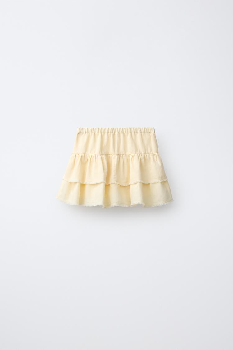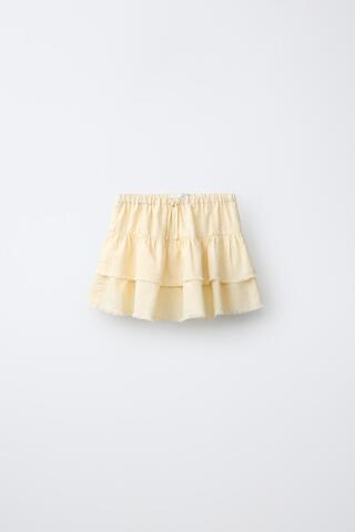 ZARA ЮБКА С ВОЛАНАМИ И ОТДЕЛКОЙ, ЦВЕТ СЛИВОЧНОГО МАСЛА