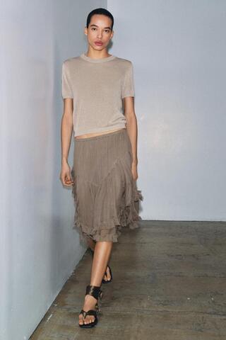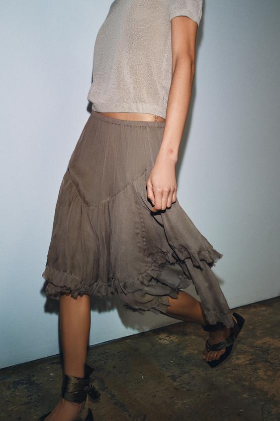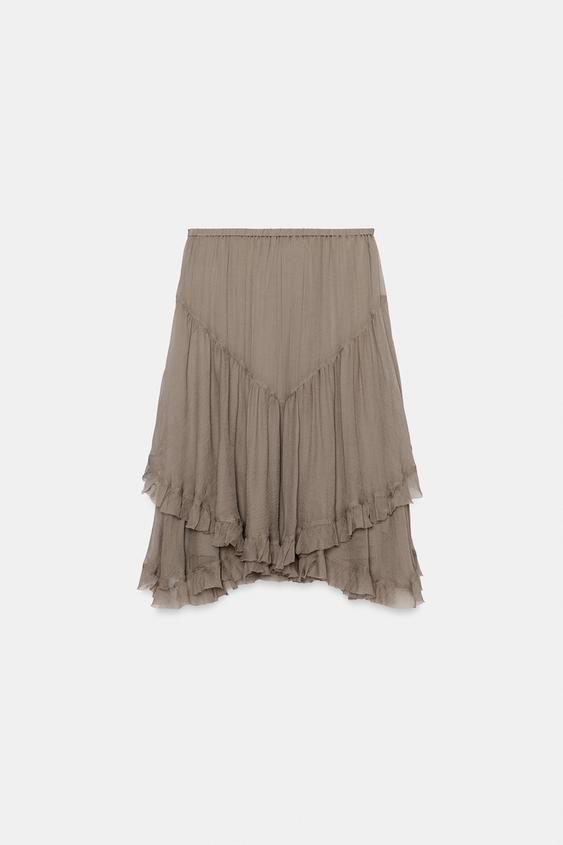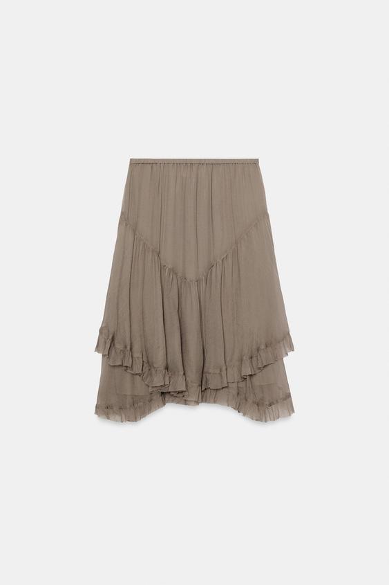ZARA ЮБКА С ВОЛАНАМИ — ZW COLLECTION, СЕРО-КОРИЧНЕВЫЙ