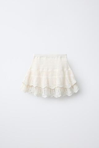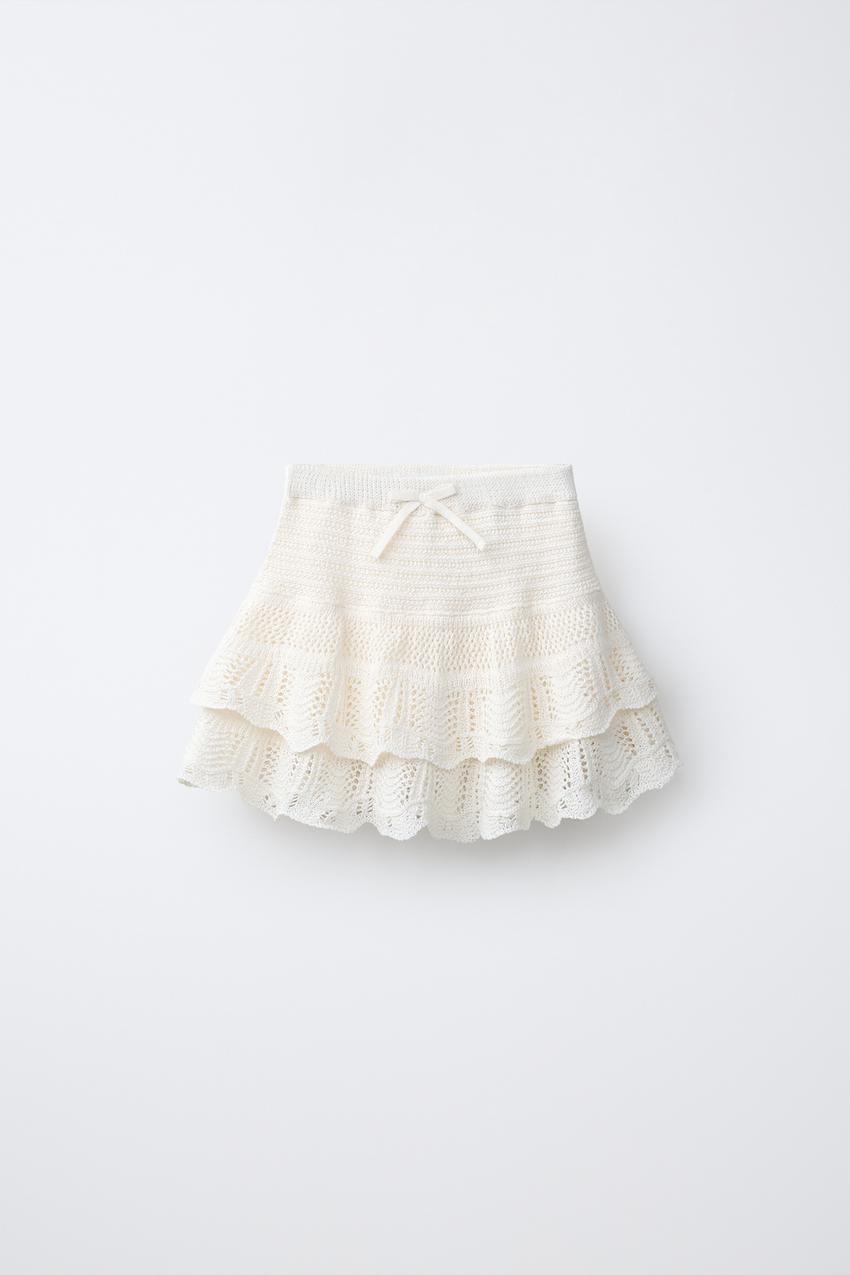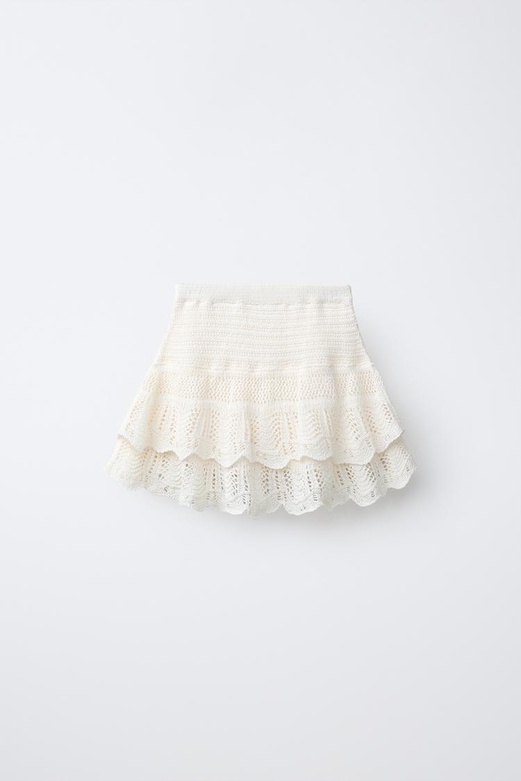 ZARA ЮБКА С ВЫШИВКОЙ, ЖЕЛТОВАТО-БЕЛЫЙ