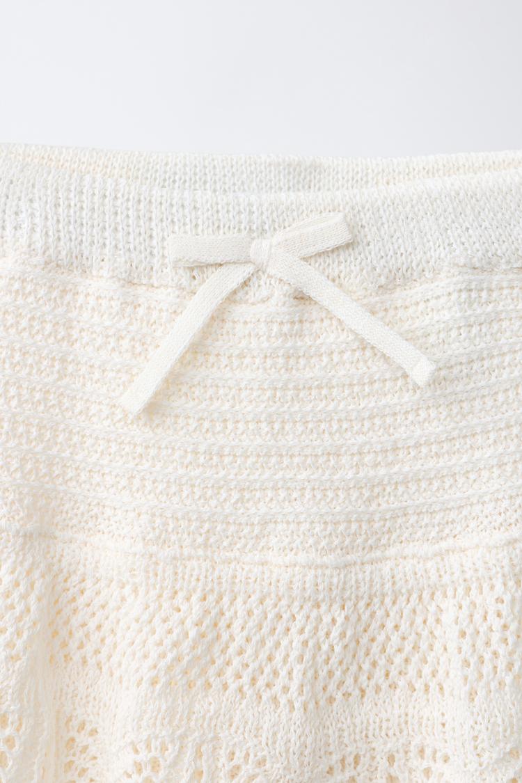 Юбка с эластичным поясом, бантом спереди и внутренними шортами. Воланы и вышивка.