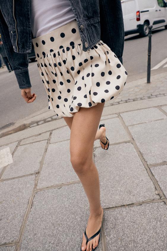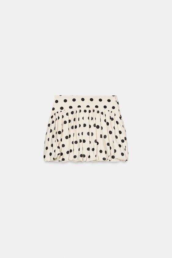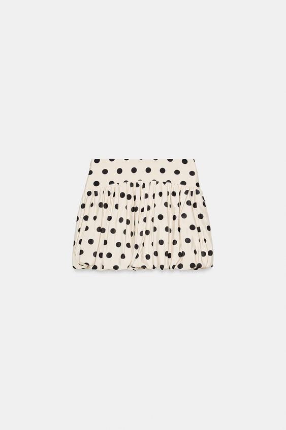 ZARA ЮБКА-ШОРТЫ-БАЛЛОН В ГОРОШЕК, ЭКРЮ/ЧЕРНЫЙ