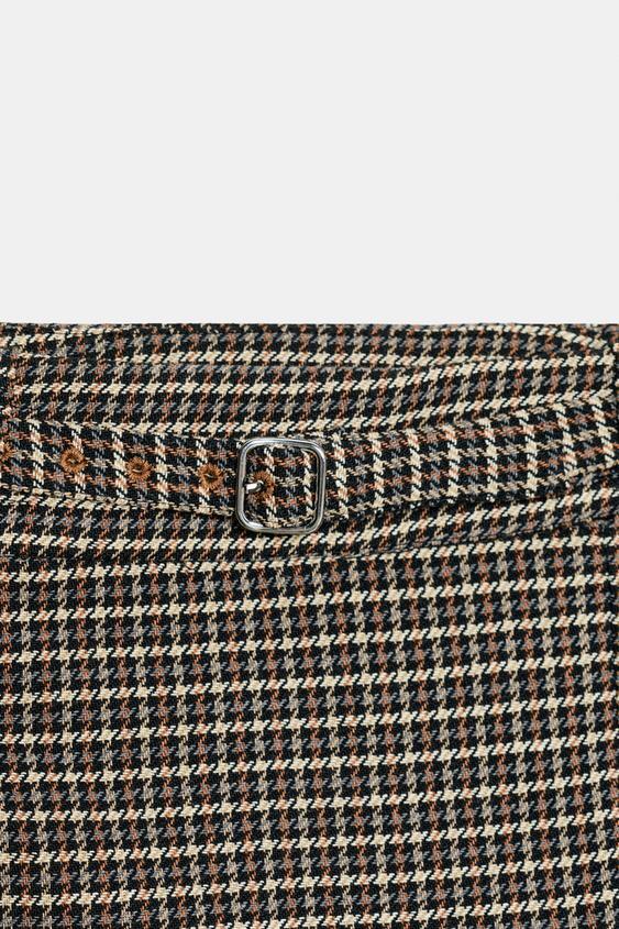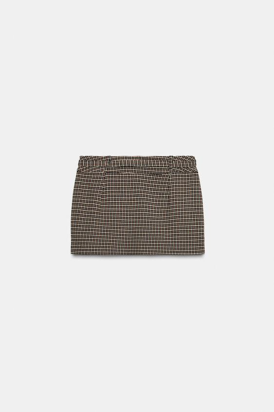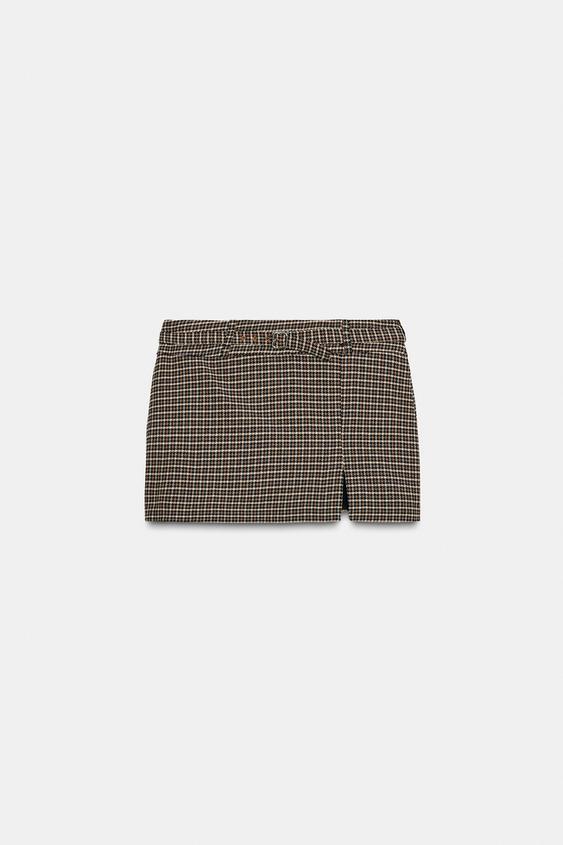 ZARA ЮБКА-ШОРТЫ «ГУСИНАЯ ЛАПКА» С РЕМНЕМ, СЕРЫЙ/НЕЖНО-КОРИЧНЕВЫЙ