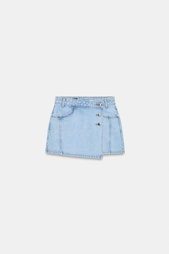 ZARA ЮБКА-ШОРТЫ ИЗ ДЕНИМА Z1975 С ЗАПÁХОМ, ГОЛУБОЙ