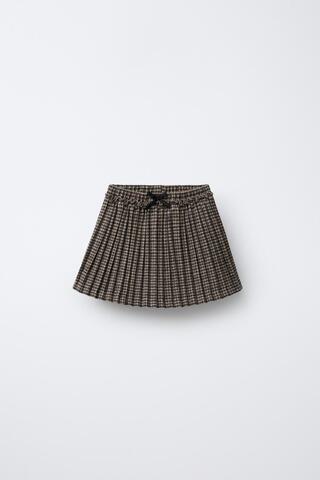 ZARA ЮБКА-ШОРТЫ ПЛИССЕ В КЛЕТКУ, РЫЖЕВАТО-КОРИЧНЕВЫЙ