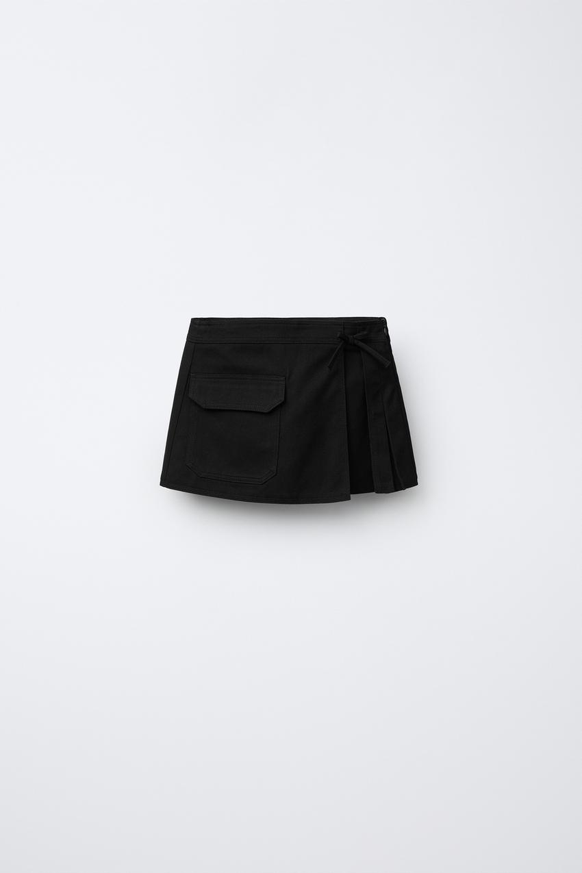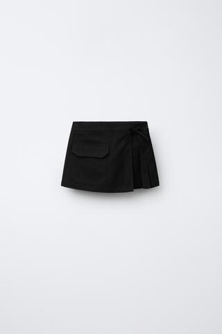 ZARA ЮБКА-ШОРТЫ С КАРМАНОМ, ЧЕРНЫЙ