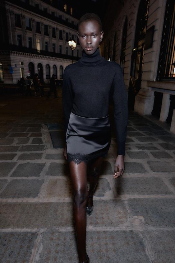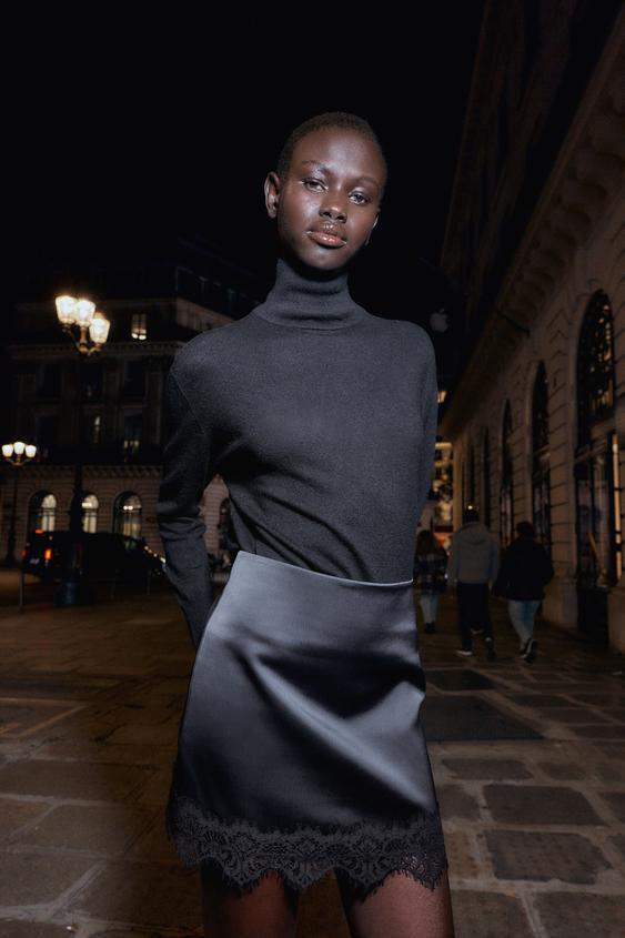 ZARA ЮБКА-ШОРТЫ С КРУЖЕВНОЙ ОТДЕЛКОЙ, ЧЕРНЫЙ