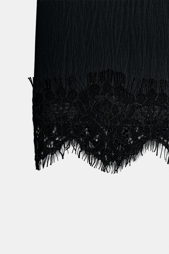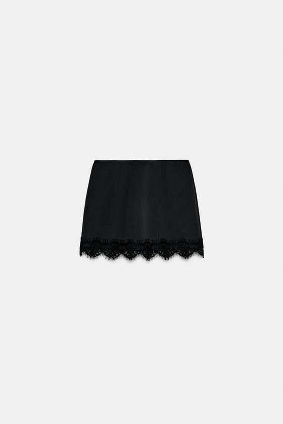 ZARA ЮБКА-ШОРТЫ С КРУЖЕВНЫМ НИЗОМ, ЧЕРНЫЙ