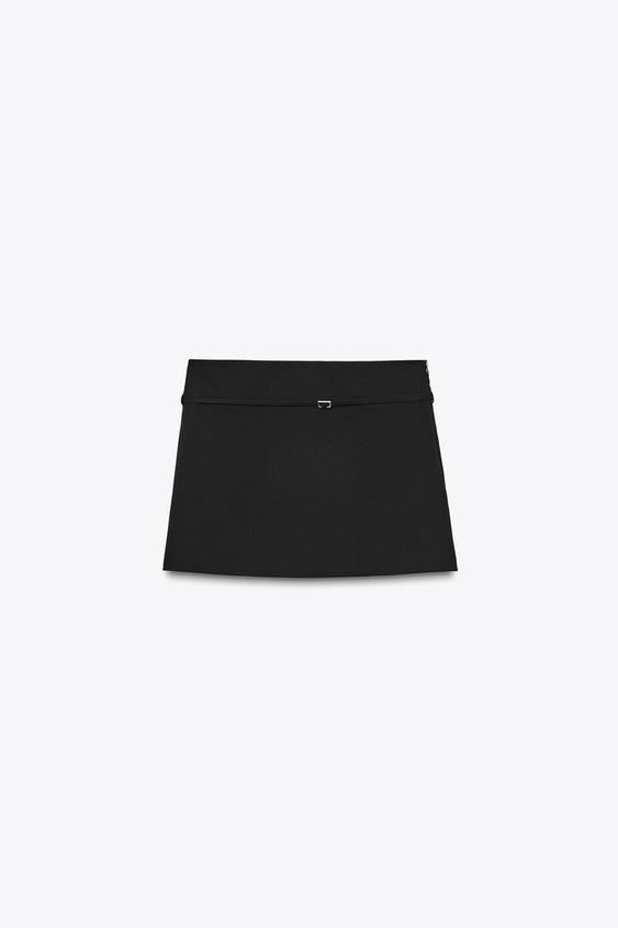 ZARA ЮБКА-ШОРТЫ С РЕМНЕМ, ЧЕРНЫЙ