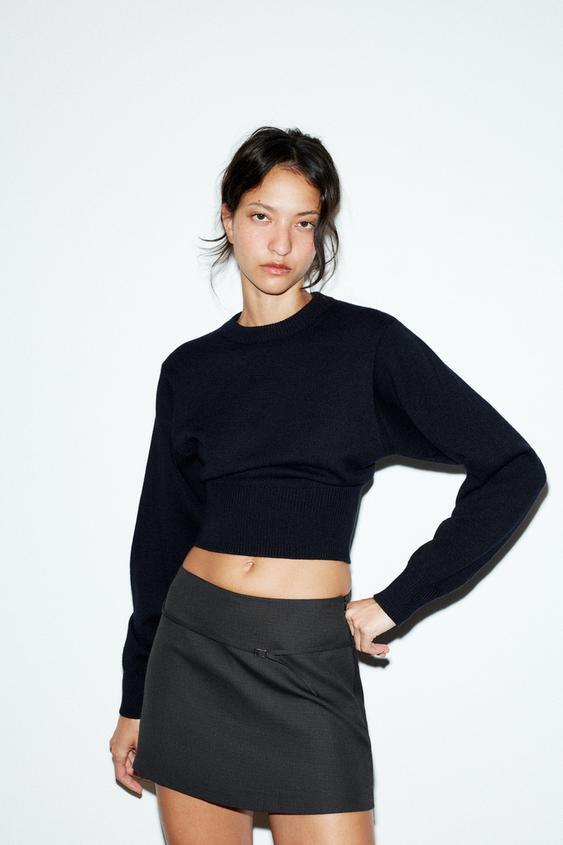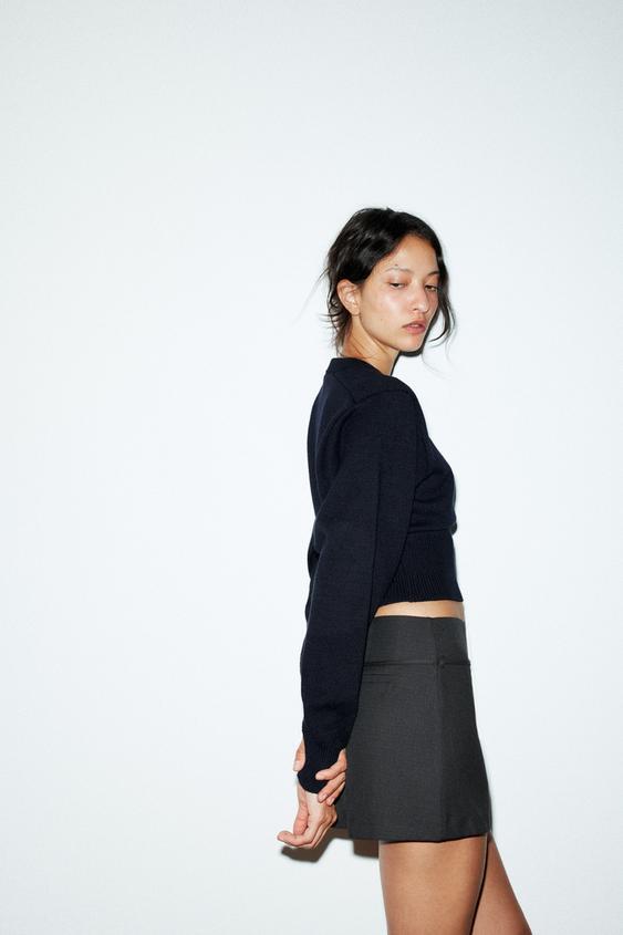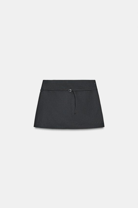 Юбка-шорты со средней посадкой. Тонкий ремень с металлической пряжкой. Комбинированная подкладка. Потайная молния сбоку.