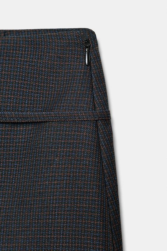 ZARA ЮБКА-ШОРТЫ С РЕМНЕМ, КОРИЧНЕВЫЙ/СИНИЙ