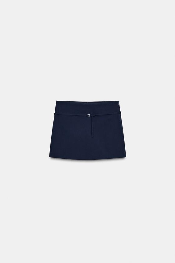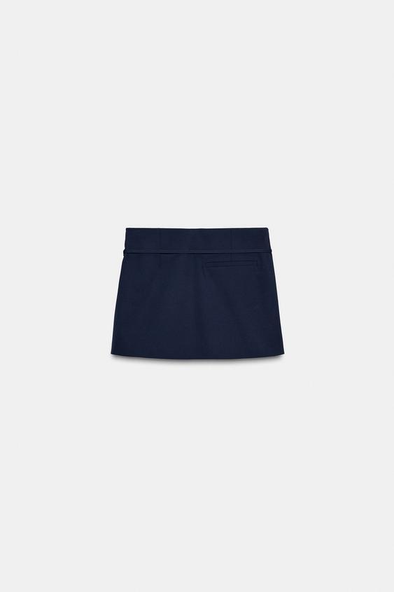 ZARA ЮБКА-ШОРТЫ С РЕМНЕМ, МОРСКОЙ ТЕМНО-СИНИЙ