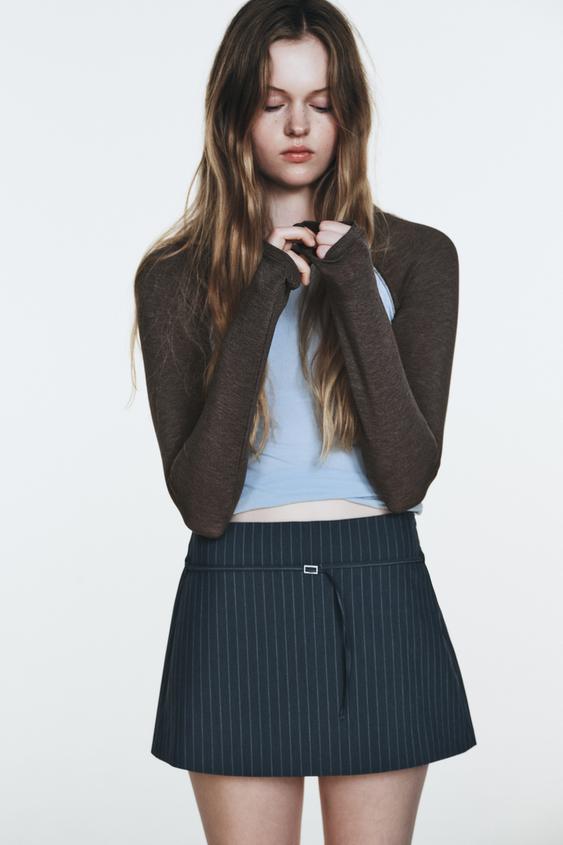 ZARA ЮБКА-ШОРТЫ С РЕМНЕМ, СИНИЙ МЕЛАНЖ