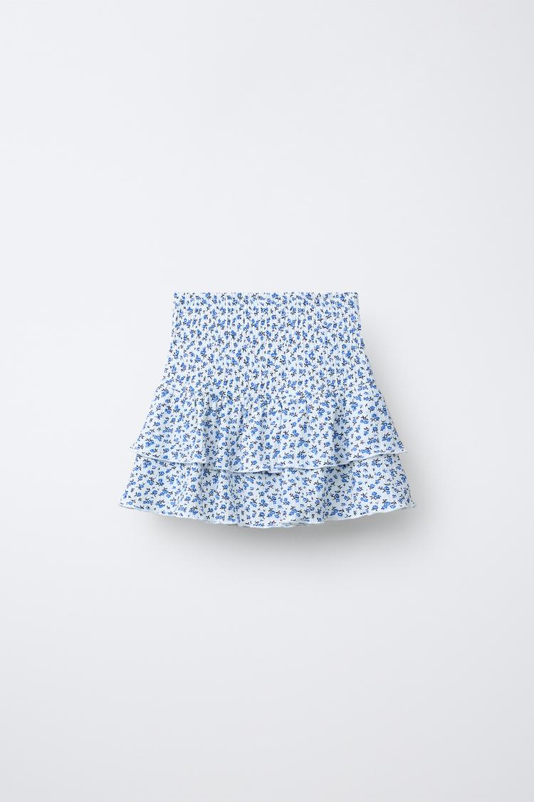 ZARA ЮБКА-ШОРТЫ С ЦВЕТОЧНЫМ ПРИНТОМ, БЕЛЫЙ/МОРСКОЙ СИНИЙ