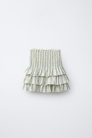 Юбка-шорты с эластичным поясом, воланами и цветочным принтом.