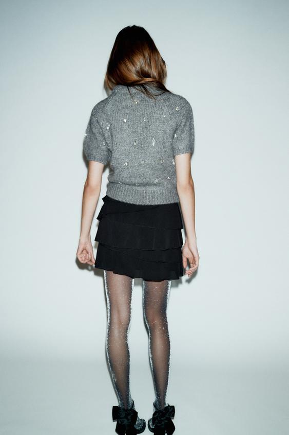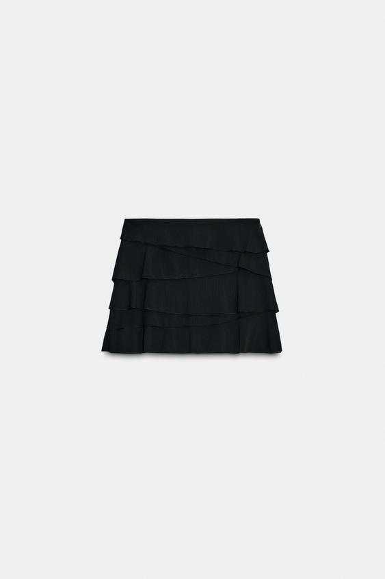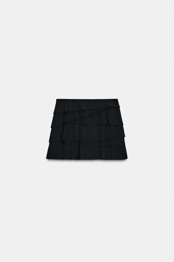 ZARA ЮБКА-ШОРТЫ С ВОЛАНАМИ, ЧЕРНЫЙ