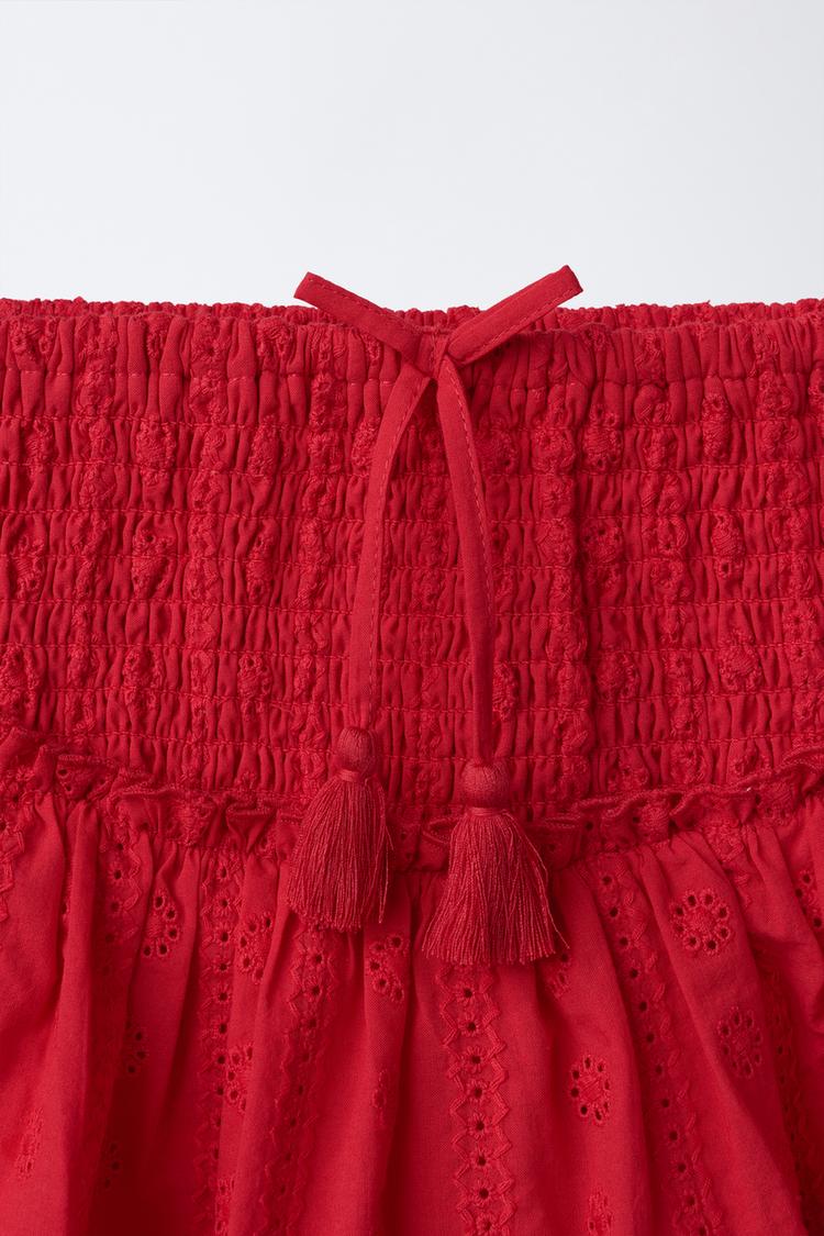 ZARA ЮБКА-ШОРТЫ С ВОЛАНАМИ И ВЫШИВКОЙ ШИФФЛИ, КРАСНЫЙ