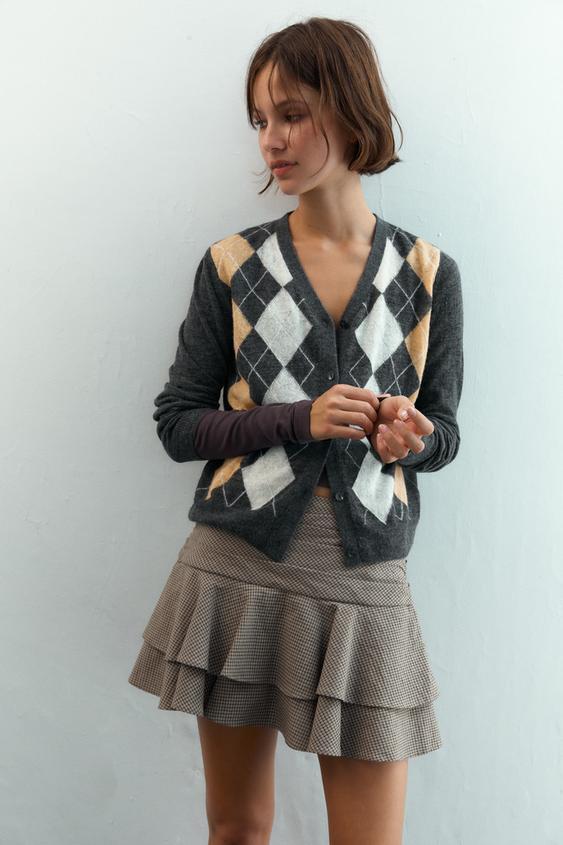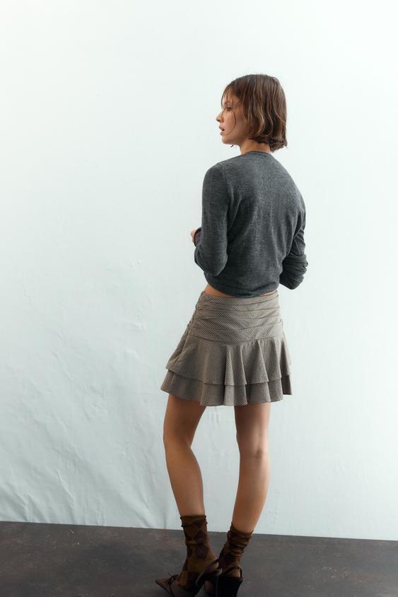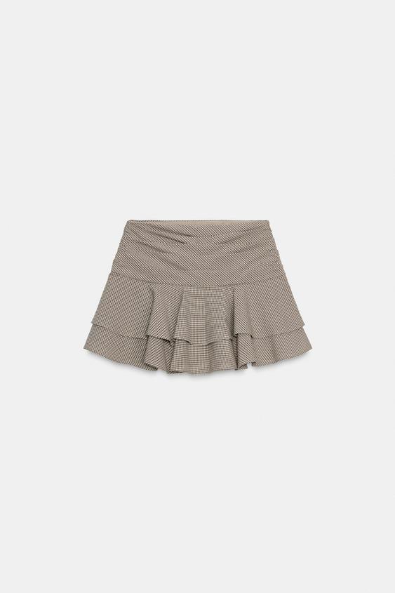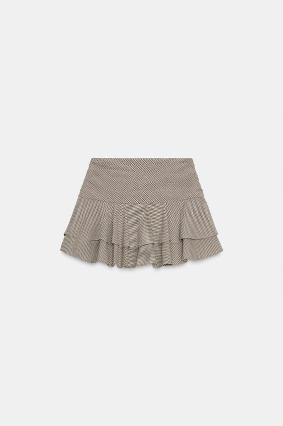 ZARA ЮБКА-ШОРТЫ С ВОЛАНАМИ, РЫЖЕВАТО-КОРИЧНЕВЫЙ
