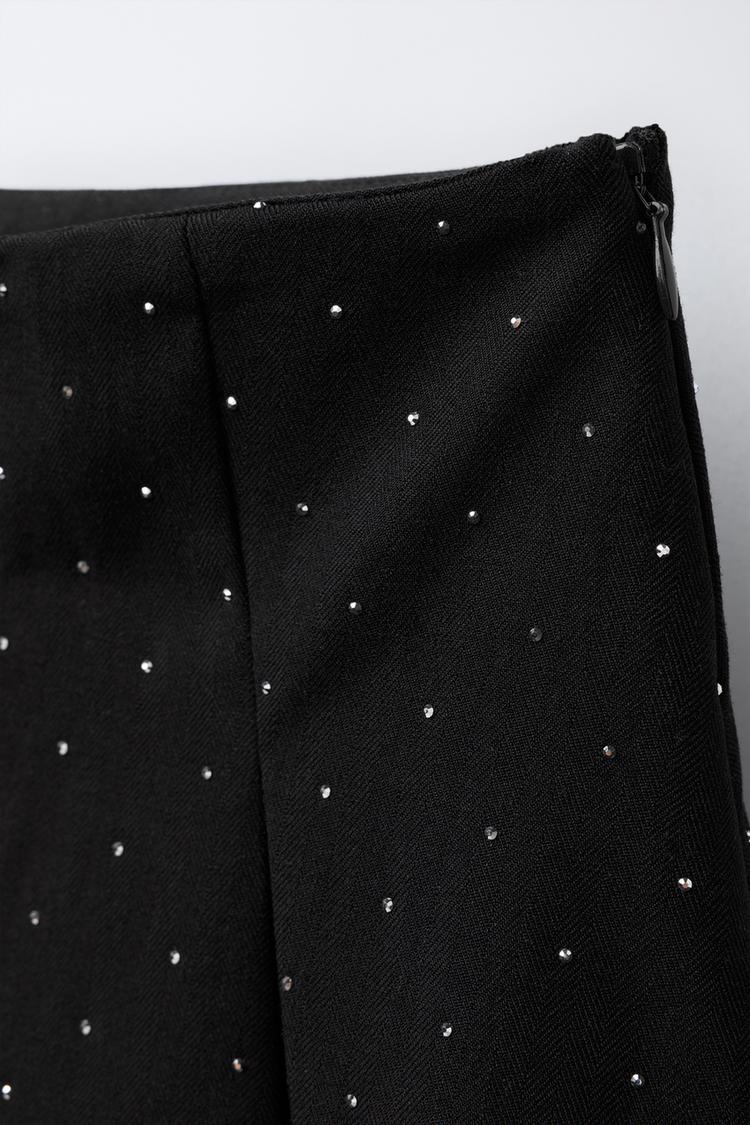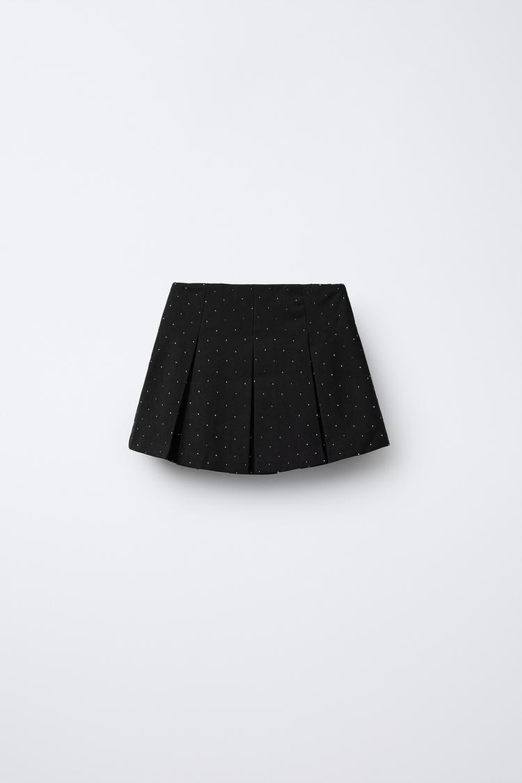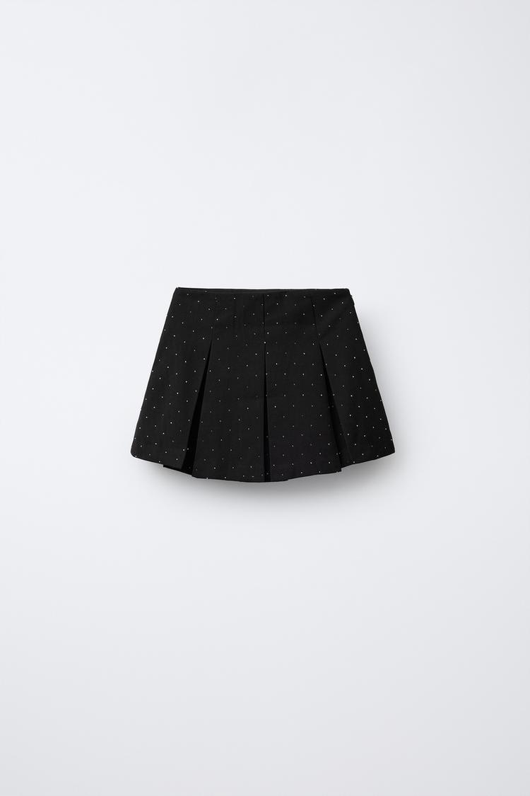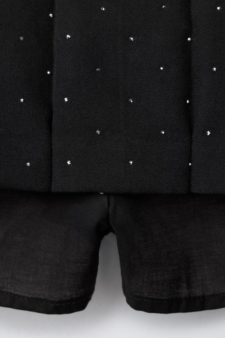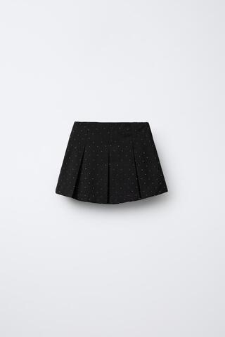 ZARA ЮБКА-ШОРТЫ СО СКЛАДКАМИ И СТРАЗАМИ, ЧЕРНЫЙ
