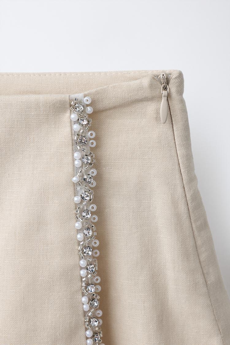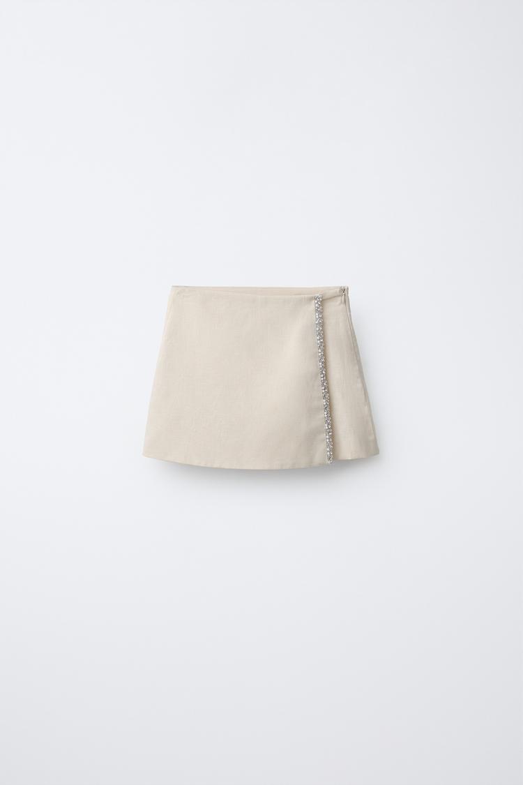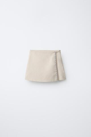 ZARA ЮБКА-ШОРТЫ СО СТРАЗАМИ, БЕЖЕВЫЙ