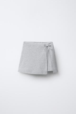 ZARA ЮБКА-ШОРТЫ SOFT TOUCH С БАНТОМ, СЕРЫЙ МЕЛАНЖ