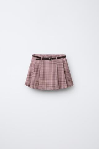 ZARA ЮБКА-ШОРТЫ В КЛЕТКУ С РЕМНЕМ, РОЗОВЫЙ