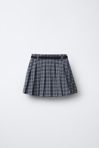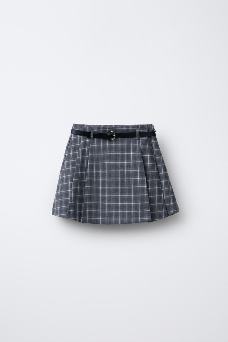 ZARA ЮБКА-ШОРТЫ В КЛЕТКУ С РЕМНЕМ, ЖЕМЧУЖНО-СЕРЫЙ